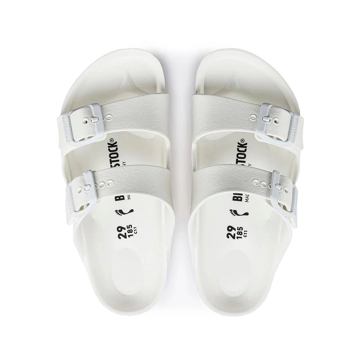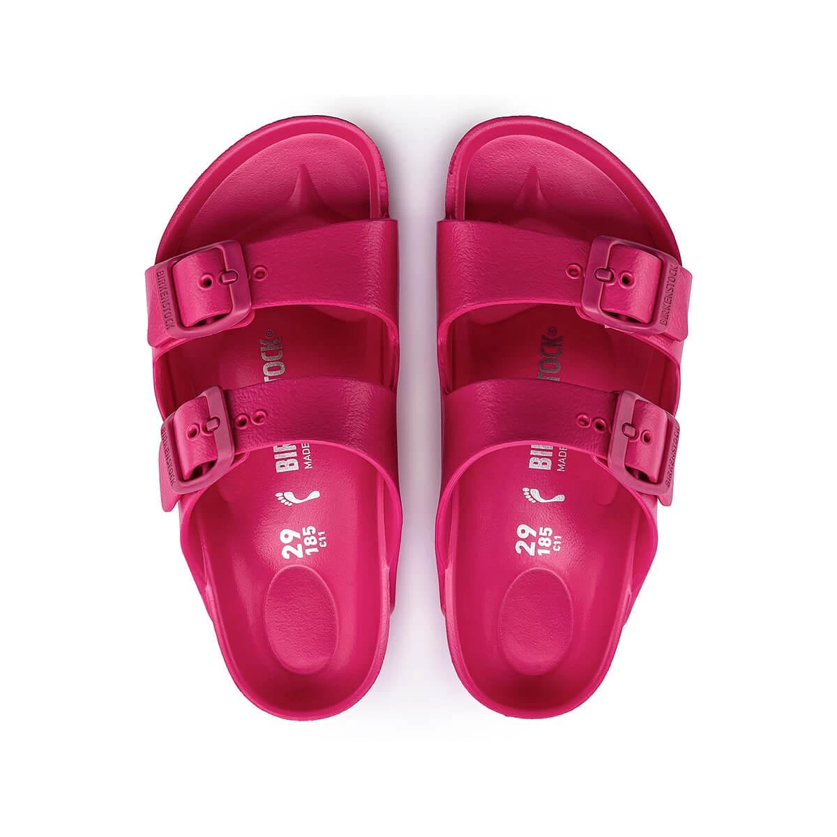 The legendary two-strap design from BIRKENSTOCK – the Arizona for kids. Modeled on the cork original, this sandal is made from ultra lightweight and highly flexible EVA. These sandals are shock absorbing, waterproof, and skin-friendly. Wear them at the beach, in the backyard, or by the pool. Sandals for all-day play!