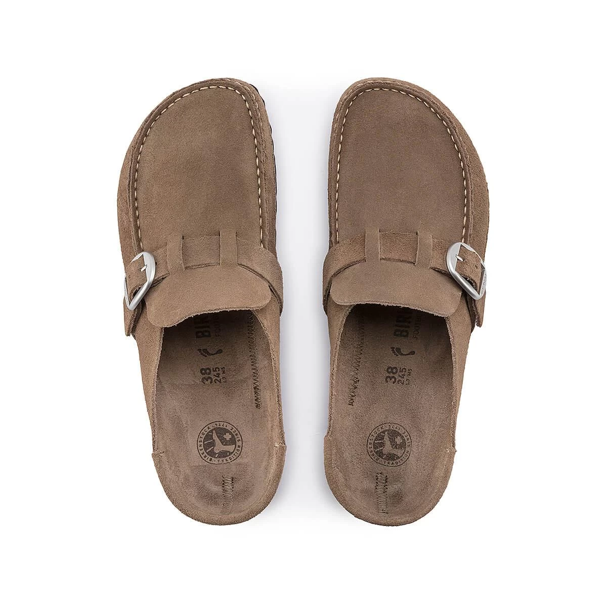 The BIRKENSTOCK Buckley is a semi-open moccasin-style clog that’s instantly recognizable as an authentic BIRKENSTOCK original thanks to its exposed cork footbed. The upper is made from soft suede leather.