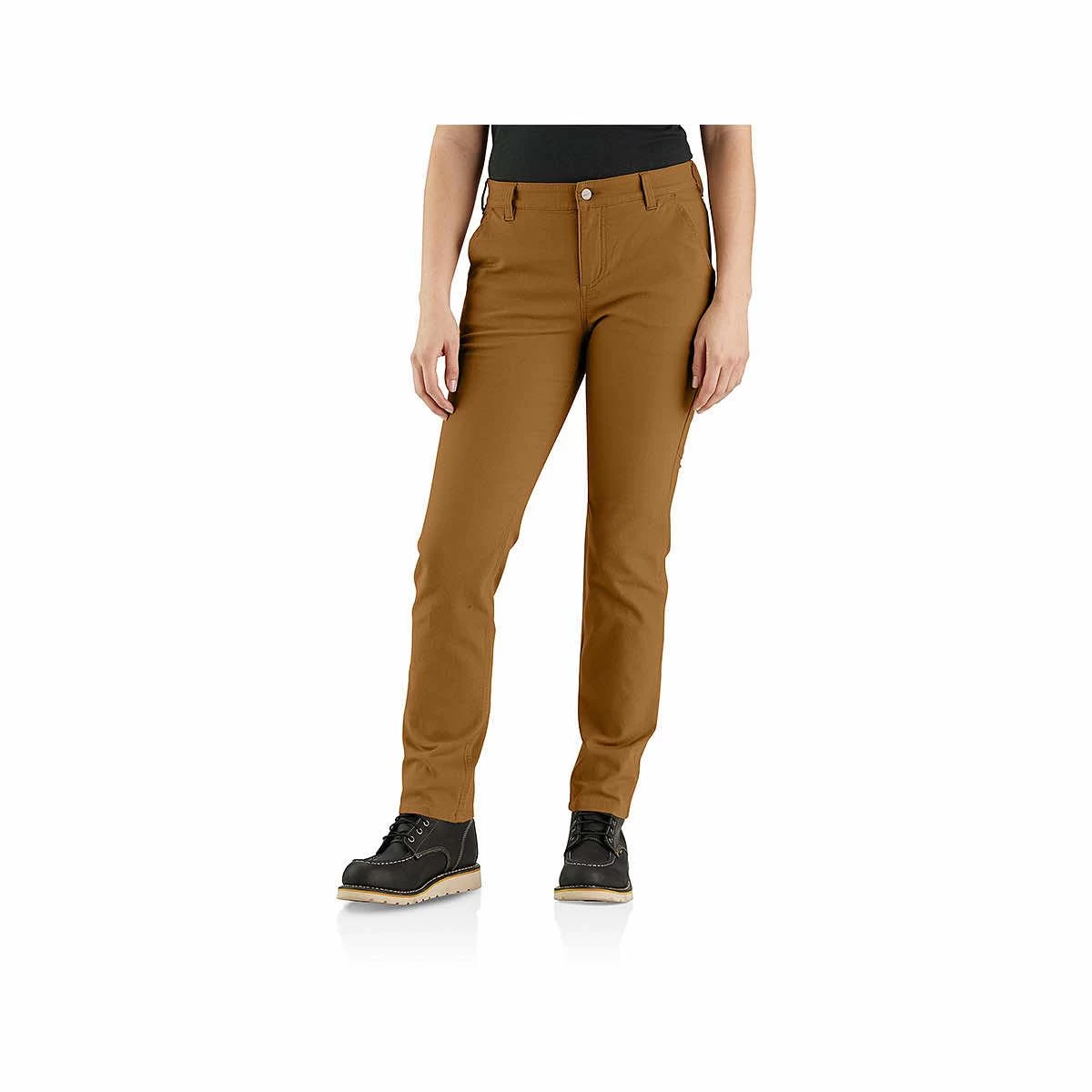 From the office to the trail, the Women’s Rugged Flex Relaxed Fit Canvas Work Pants from Carhartt are made to move with you! Rugged Flex® technology gives you enough stretch and durability so you can get the job done with ease, plus a relaxed fit keeps you comfortable all day. A utility loop along the left leg is perfect for a hammer and you’ll love the mid-rise waistband for its coverage and range of motion. Designed to be a faithful companion for years to come, these work pants mean business!