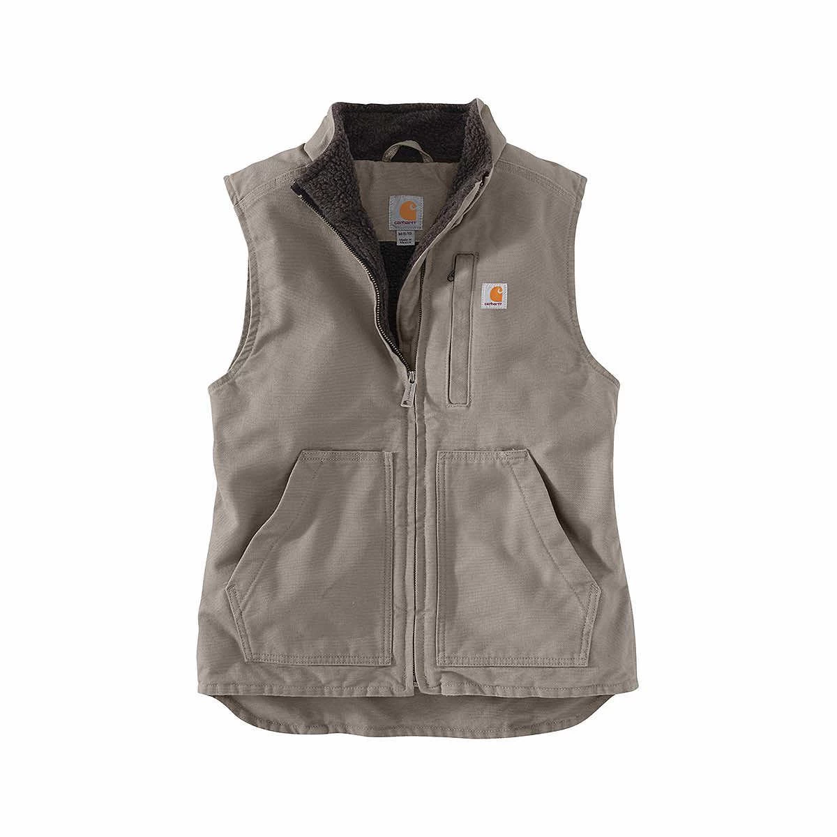 Layer smartly in the Curvy Women’s Washed Duck Sherpa-Lined Vest from Carhartt and enjoy warmth without the bulk! This awesome outerwear has a full-zip design and a mock neckline for a classic workwear look that doesn’t compromise on function. Keep your heat where you need it most with the cozy sherpa lining while the 100% washed cotton duck fabric of the exterior stays tough against the elements. Practical and attractive, this vest is here to get the job done!