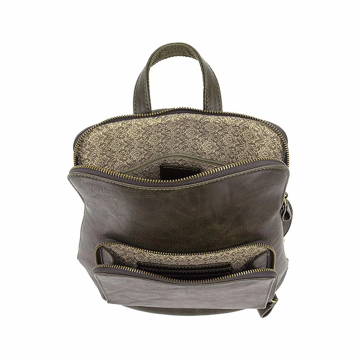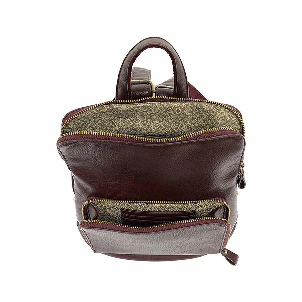 Compact and secure in just the right size, this Julia Mini Backpack from Joy Susan is made in soft tumbled vegan leather and is made for every mood and occasion! With a zippered closure and zippered front and back pockets, you can carry whatever you need safely and securely.