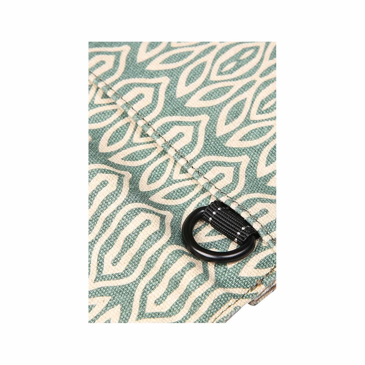 - Cord lock cinch, metal d-rings, and spring hook hardware