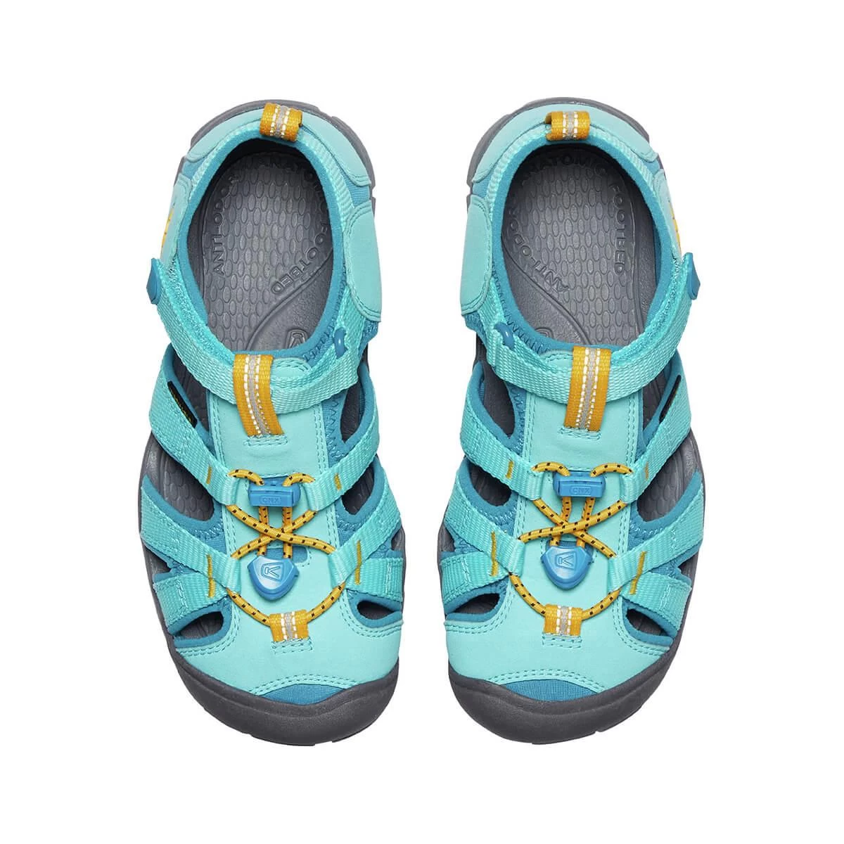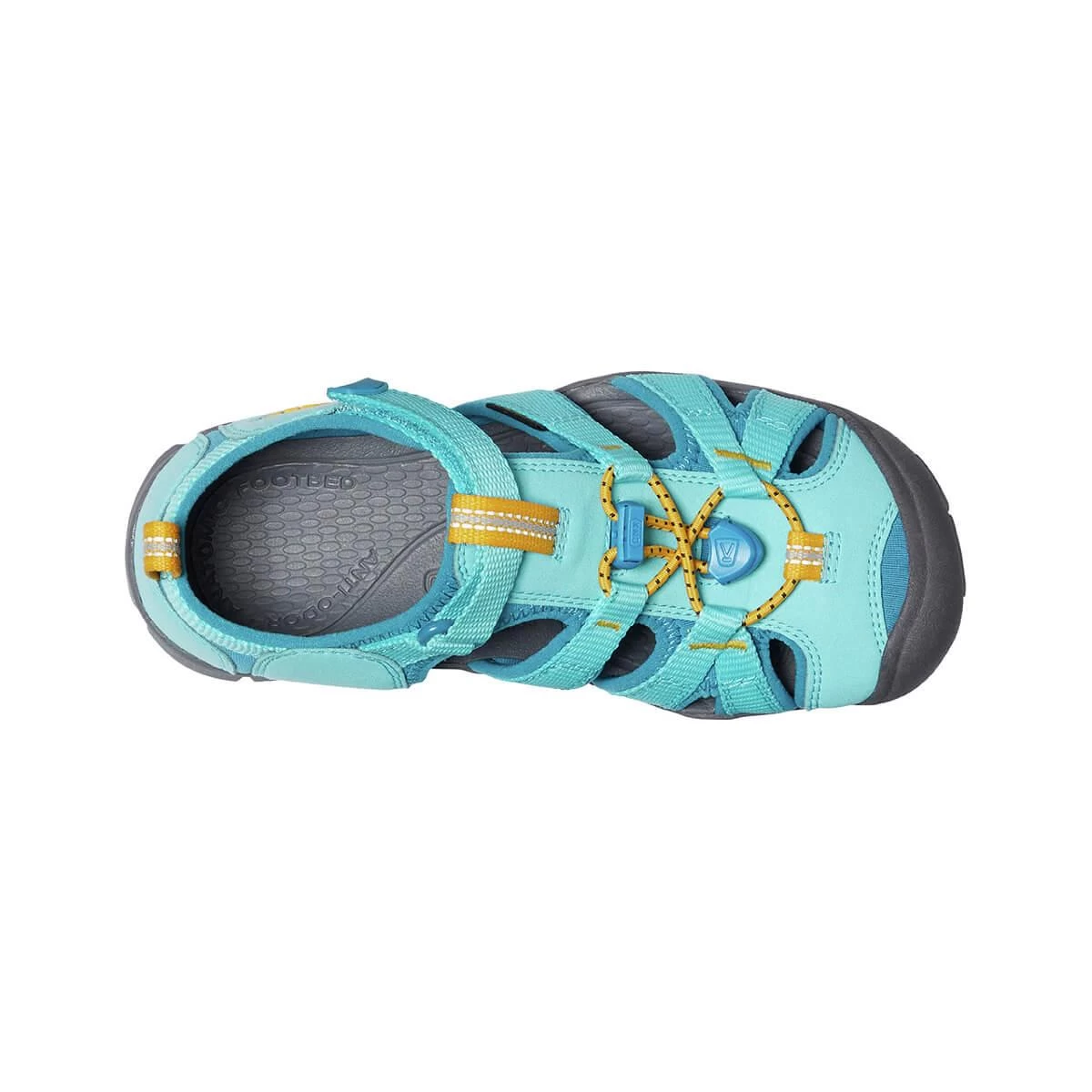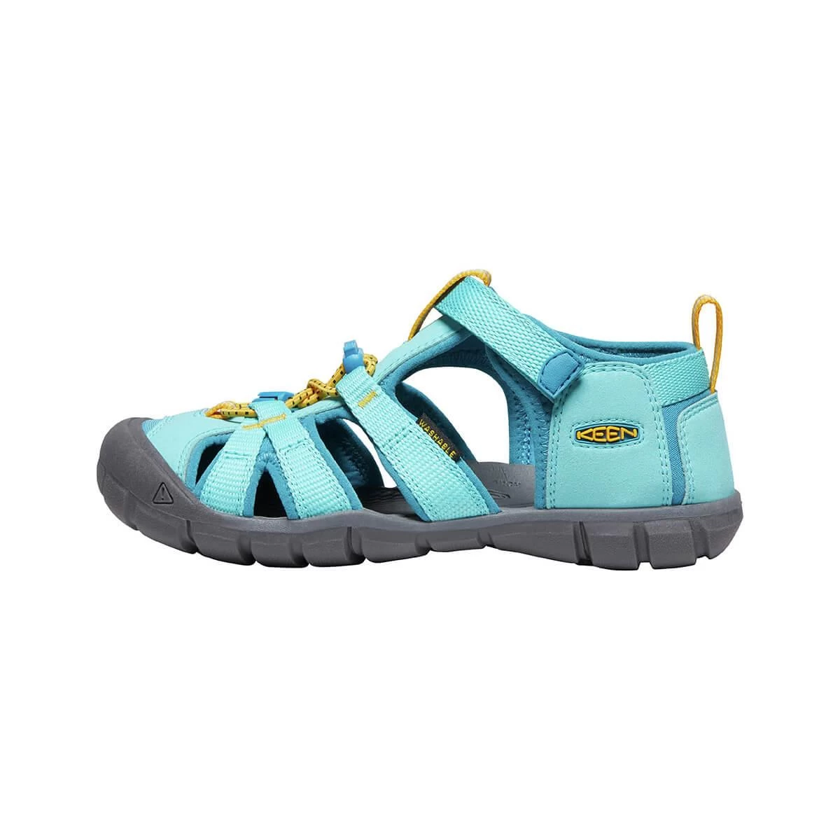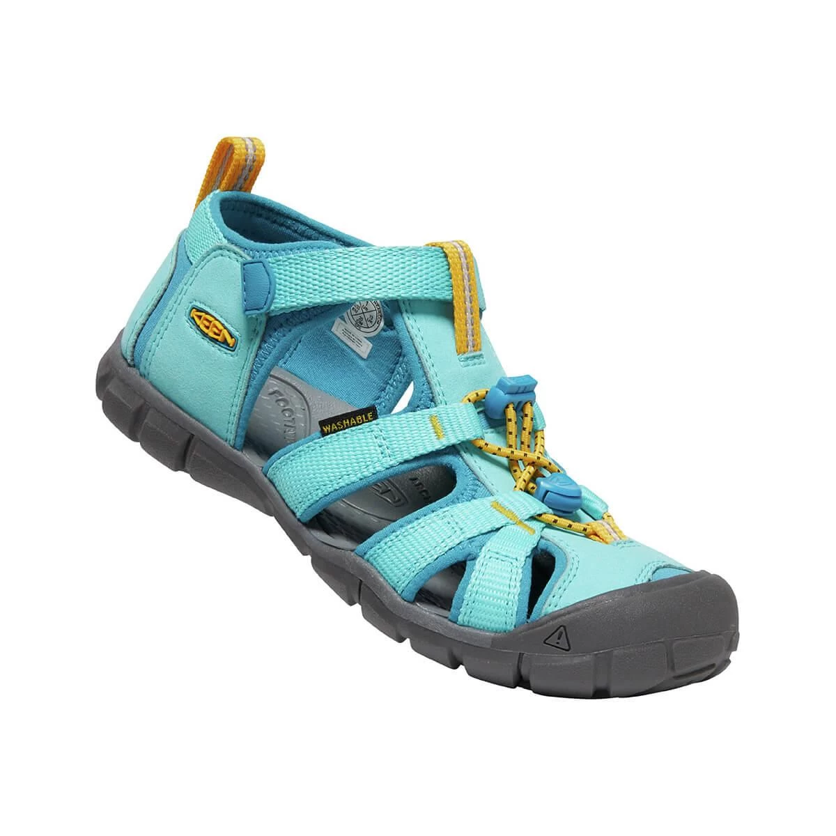 The water-friendly Youth Seacamp II CNX Sandals from KEEN will cover your children from rocky stream beds to playground structures! This iconic hybrid sandal is lighter and more flexible with a low-profile CNX rubber outsole, so there isn’t anything holding your kiddo back from exploring their full potential. Machine-washable materials and kid-friendly closures for easy on-and-off mean that these performance shoes are parent-approved, and the vibrant design and comfort will have your kids clamoring to get outside. Protect little feet from slips and stumbles with the iconic rubber toe bumper that makes KEEN footwear stand out from the pack. Fun, functional, and fabulously colorful, your littles will love these water sandals!