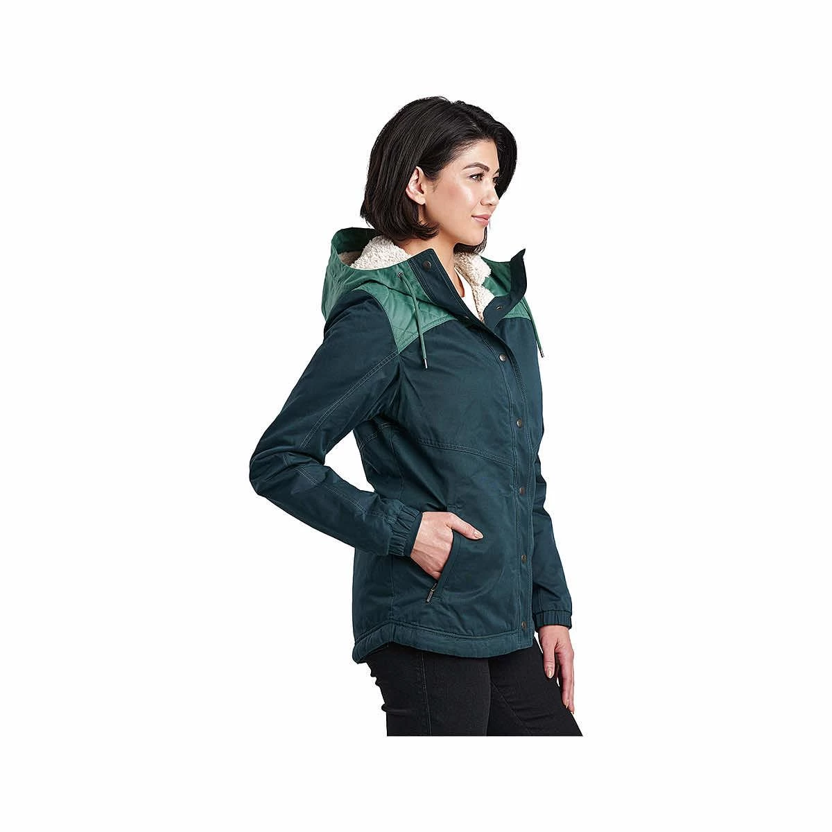 Your fall fashion just went to the next level of function and fit with the Women’s Celeste Lined Hoodie from KÜHL. Designed with a durable wax-coated exterior and a luxurious Italian fleece lining, the Celeste provides protection from wind and rain while giving you a cozy layer of warmth and winter comfort. With features like oversized, zippered hand pockets and an internal security pocket, you can keep your hands toasty and your items organized.