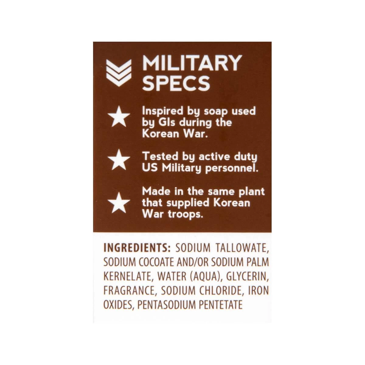 INGREDIENTS: SODIUM TALLOWATE, SODIUM COCOATE AND/OR SODIUM PALM KERNELATE, WATER (AQUA), GLYCERIN, FRAGRANCE, SODIUM CHLORIDE, IRON OXIDES, PENTASODIUM PENTETATE