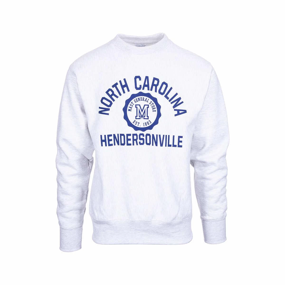 Cuddle up in the Mast General Store Hendersonville Cross Grain Crew Sweatshirt from Bay Pointe! This heavyweight cotton-blend pullover has a high-quality graphic on the front to spell out your favorite Southern spot, the Mast General Store in Hendersonville, North Carolina. Ribbing at the cuffs, hem, and collar keeps this classic crewneck comfortable and durable, so it will be a favorite in your casual closet for years to come. Celebrate Hendersonville in this awesome sweatshirt!