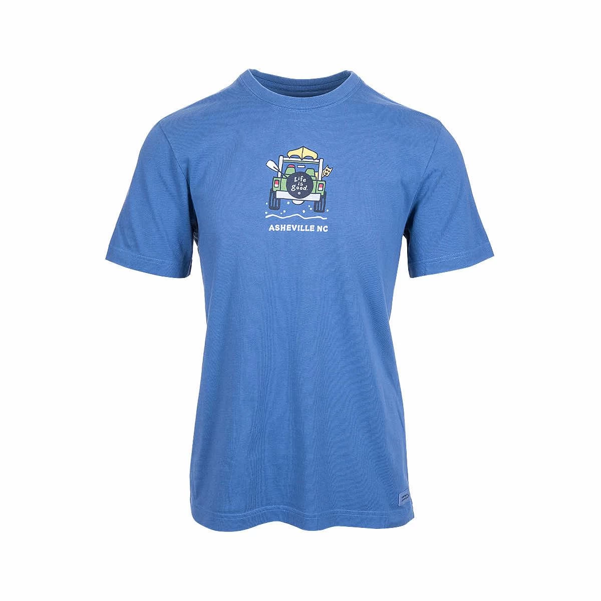 Leave bad feelings in the rearview mirror when you wear the Men’s Asheville Rocket SUV Short Sleeve Crusher T-Shirt from Life is Good! Made from 100% cotton and garment-washed for softness, this tee will skim your body just right for a look that’s as easygoing as beautiful Asheville, North Carolina. A classic crewneck design means that this shirt is easy to style for any casual occasion, especially when you want to show off your Southern pride. Life is just better in Asheville!