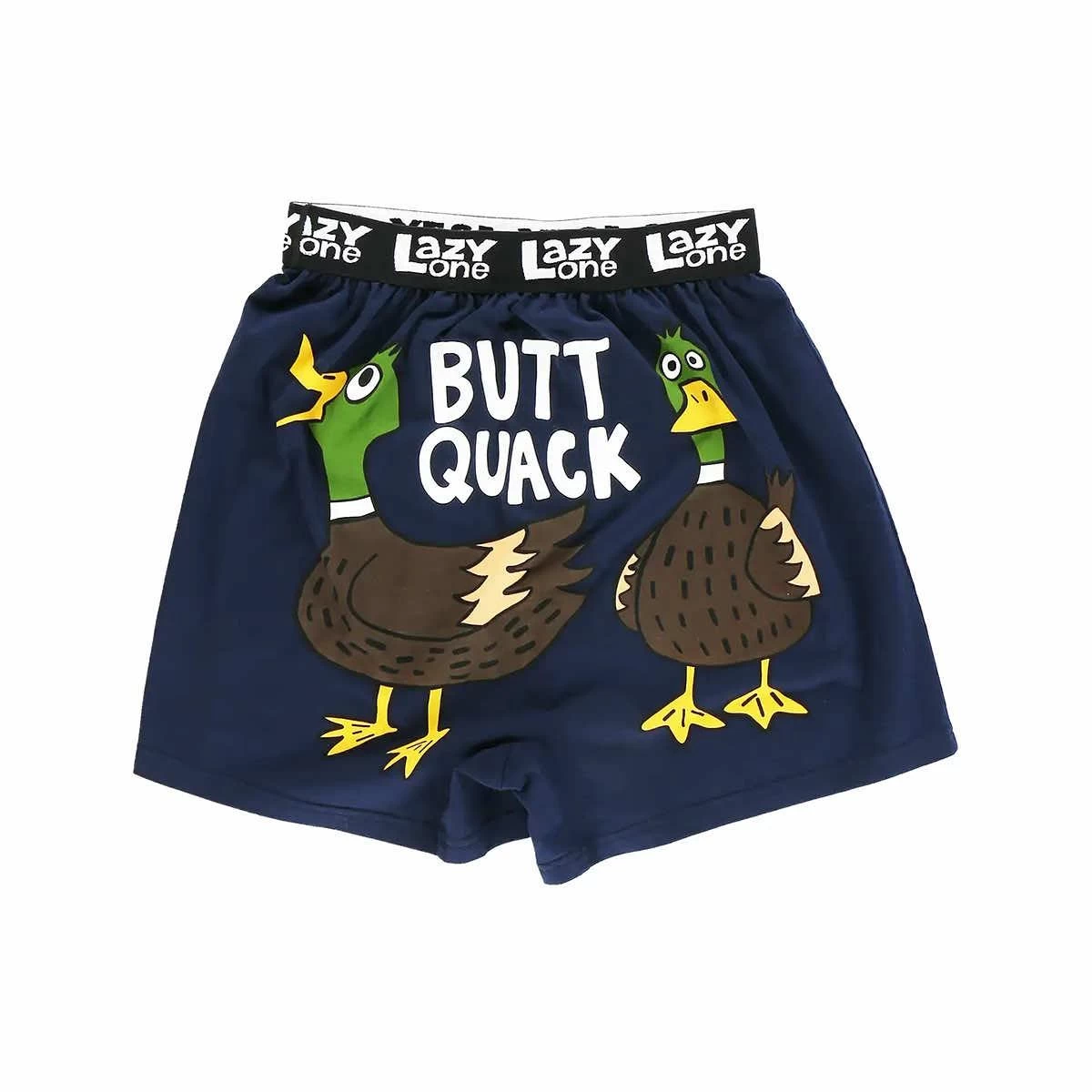 The Men’s Butt Quack Boxer from Lazy One will have everyone quaking up! Made from soft 100% combed cotton knit, these boxers have a roomy fit with a button fly and an exposed elastic band. It’s easy to see why the butt stops here!