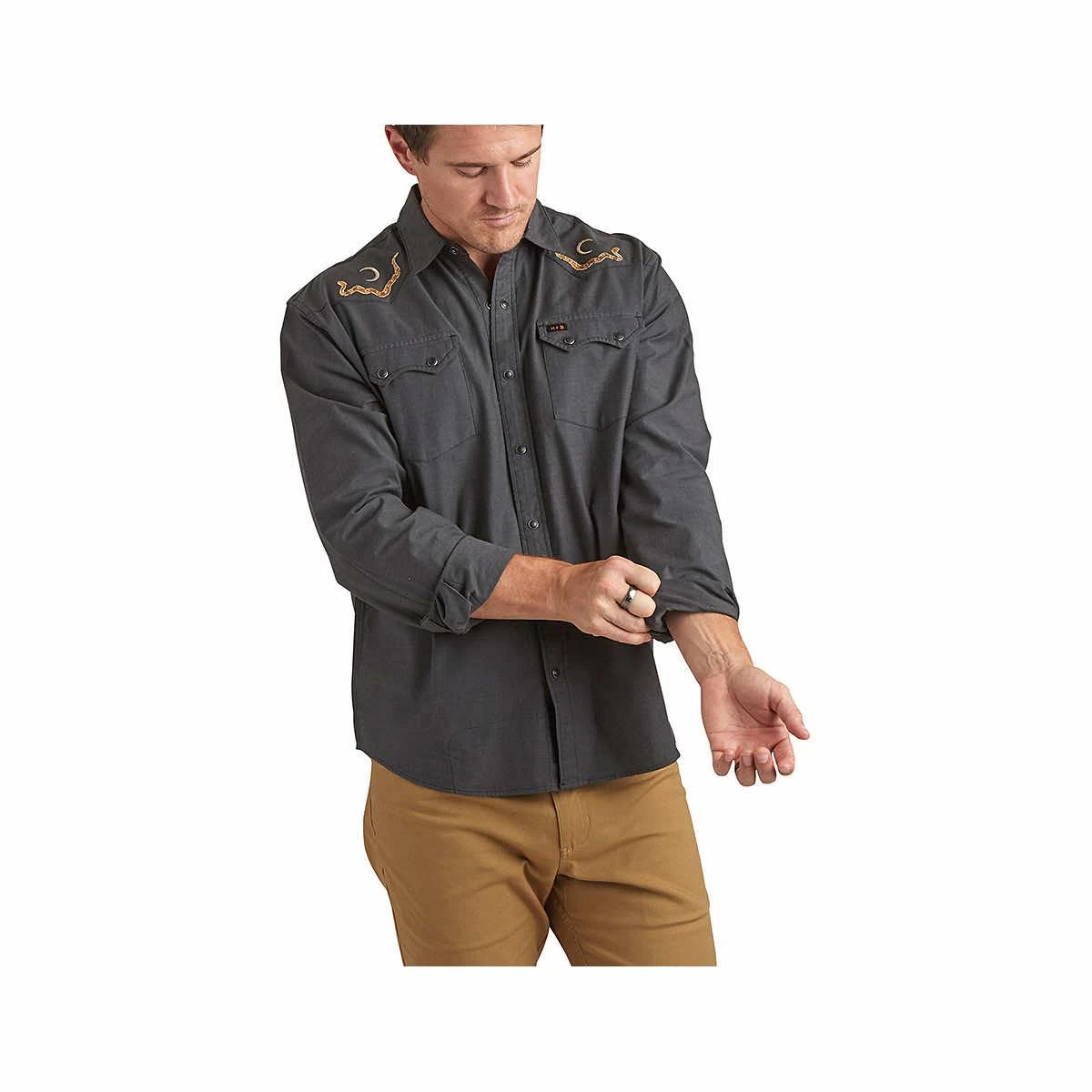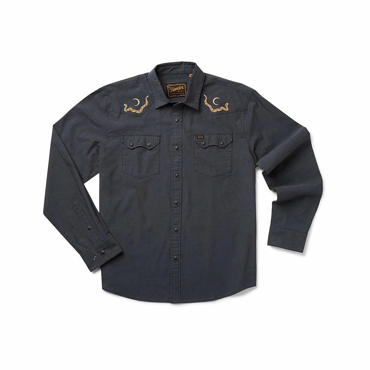 The Men’s Crosscut Deluxe Long Sleeve Snapshirt from Howler Bros is the most sought-after item in the fall line year in and year out. Yes, the vintage-inspired motif embroidery makes a big statement but so do the bountiful pearl snaps, western yokes, and robust stretch chambray. Collect these right along with your favorite corduroy pants for year-round Howler coverage. From evenings out on the town to relaxing around a fire pit with your favorite beverage, the Crosscut Deluxe Snapshirt is ready to make an entrance this season!