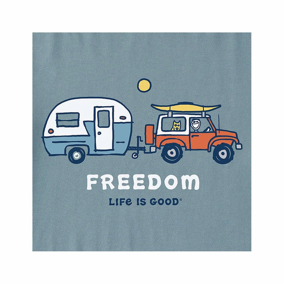 Let the open road take you to adventure in the Men’s Jake and Rocket Freedom Short Sleeve Crusher Lite T-Shirt from Life is Good! This excellent tee is unbelievably soft, made of 100% cotton that has been garment-washed to achieve the ultimate fit, and the lightweight feel is just right for hot summer days. The classic crewneck style will fit seamlessly into your casual closet, and this shirt is comfortable enough for everyday wear. Experience fashion freedom in this amazing t-shirt!
