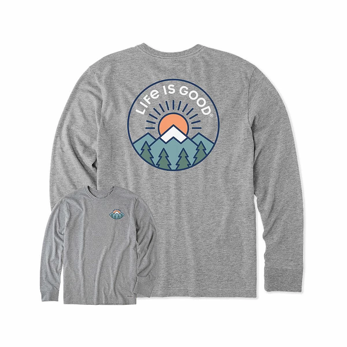 There is nothing more refreshing for the heart and soul than a mountain sunrise! The Men’s Mountain Sunrise Long Sleeve Crusher T-Shirt from Life is Good is the everyday-comfort tee you’ll love to wear. Made from an incredible cotton blend and garment-washed for softness, this classic crewneck has tons of casual style. Take on the day in this awesome t-shirt!