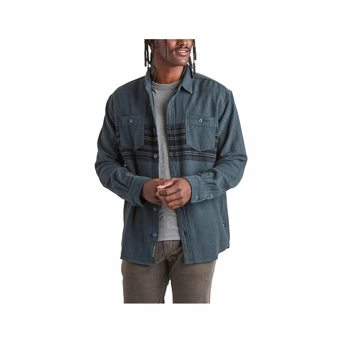The Men’s Rodanthe Blanket Flannel Long Sleeve Shirt from Howler Bros is a classic look that’s full of function. The Rodanthe has a vintage style and feel while serving as an everyday flannel shirt or midweight jacket for fall. Made of 100% cotton heavyweight blanket flannel with a button up front, reinforced elbow patches, and unique HB enamel buttons. From cool mornings surveying the surf to afternoons setting up a campsite, the Rodanthe Blanket Flannel is a highlight to any wardrobe.