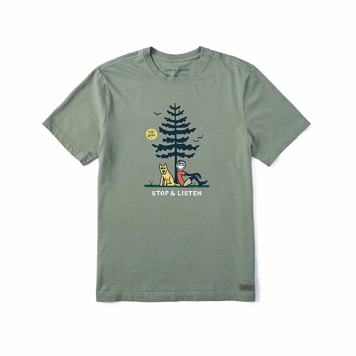 A moment of zen isn’t hard to find when you wear the Men’s Stop And Listen Crusher Lite T-Shirt from Life is Good! This comfy cotton crewneck is a more lightweight version of Life is Good’s iconic Crusher tee, perfect for layering. The expertly printed graphic on the front features Jake and his faithful companion, Rocket, contemplating the scenery in silence. You’ll love to wear this stylish and comfortable t-shirt!