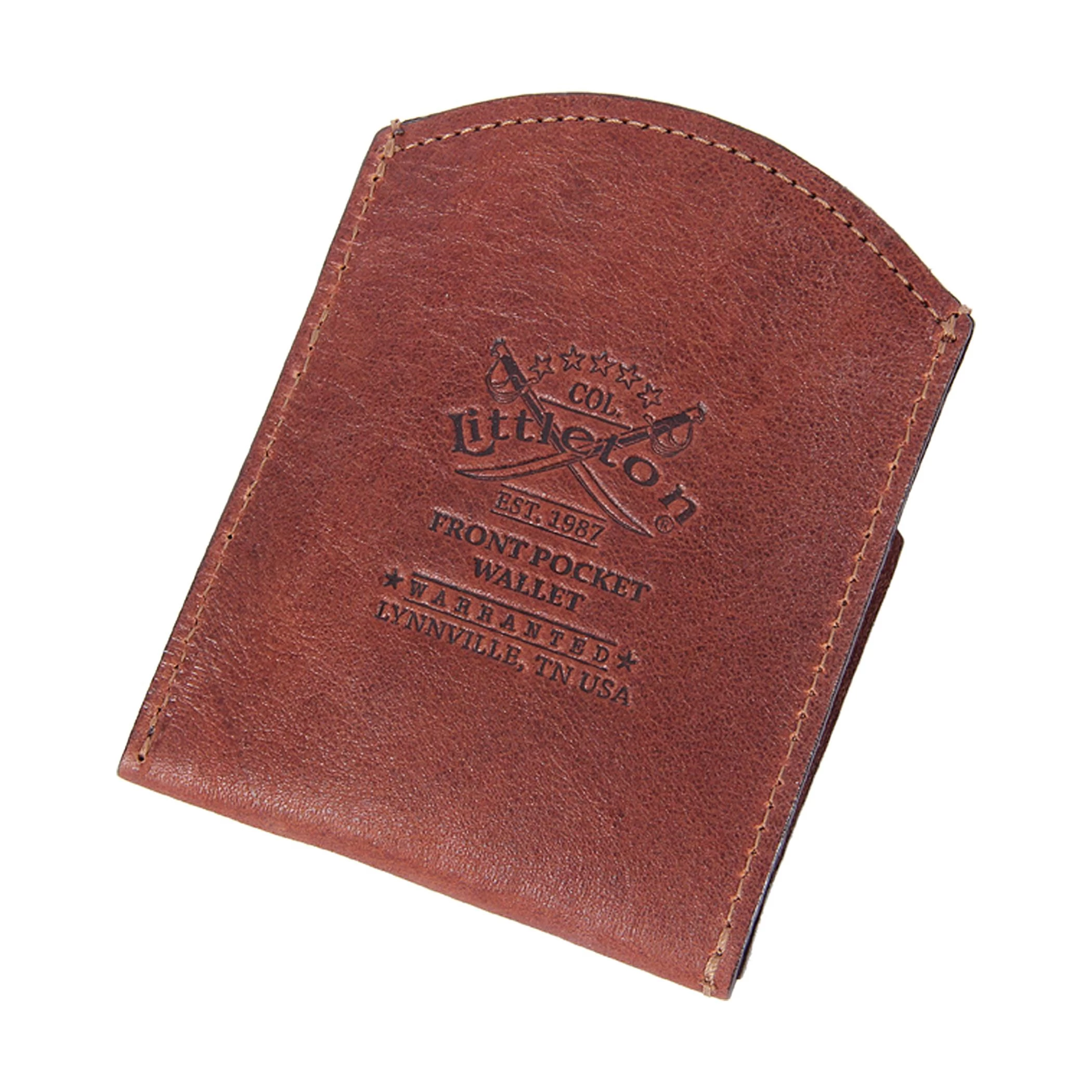 Guaranteed, you will be a convert! Enjoy the ease and security of front pocket carry with Colonel Littleton’s stylish No. 5 Front Pocket Wallet. Made in his Lynnville, TN workshop of brown dry-milled leather, it weighs in at one-half ounce, has two pockets, and carries folding money, ID, and a few credit cards. Personalize it on the front with three initials to truly make it your own.