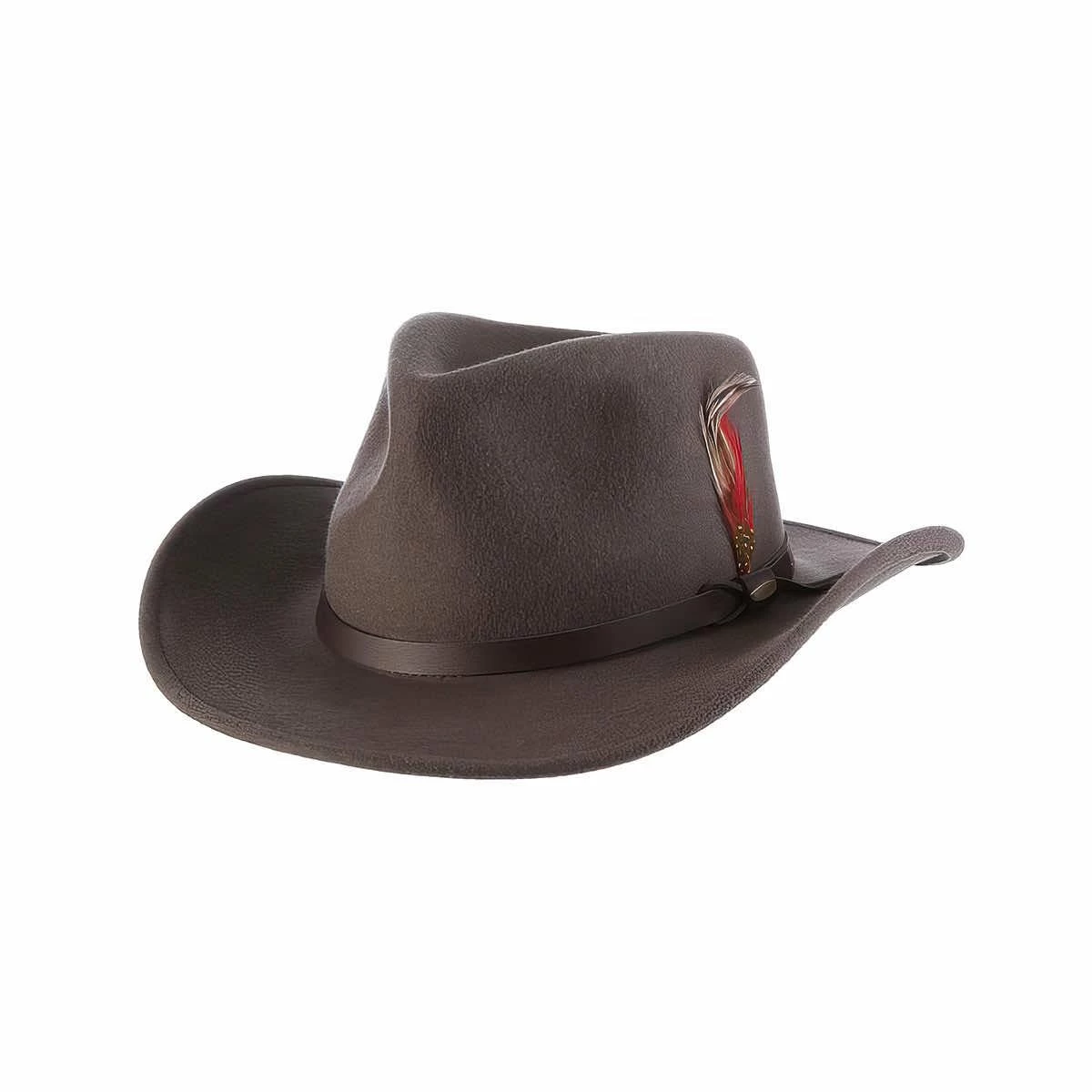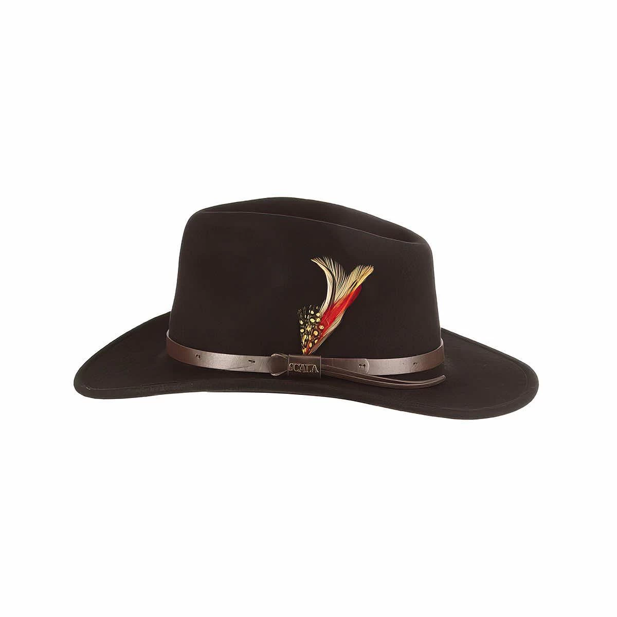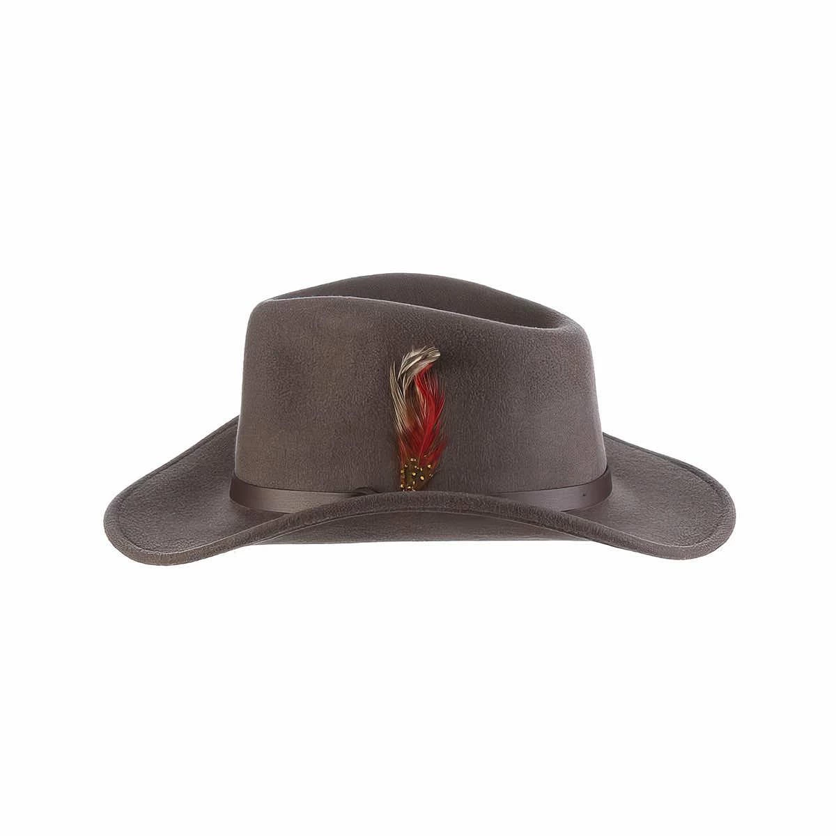Bring the adventure everywhere you go with the Men’s Dakota Wool Felt Hat from Scala! This rugged outback hat is made from water-repellent wool felt that looks great and helps keep you dry in wet conditions. The faux leather band features a decorative feather that will have you ready for an evening on the town just as quickly as a day on the trail. Doff this awesome hat when you need solid style that doesn’t compromise on function!