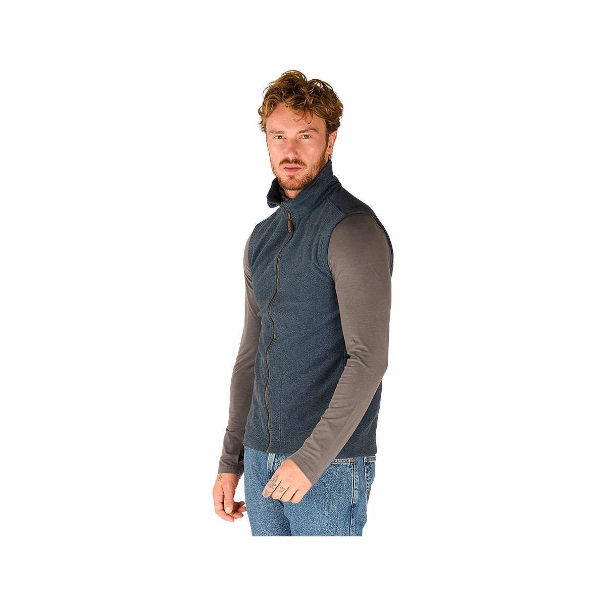 The Men’s Rolpa Eco Vest from Sherpa provides exceptional bulk-free warmth and effortless style. It is made responsibly from premium, super-soft polyester with an ultralight 100wt two-sided brushed anti-pill fleece for incredible thermal regulation and next-to-skin comfort. The forward set shoulder seams enhance mobility during more active pursuits while the full front zip allows for super quick ventilation when temperatures rise. Exceptionally versatile, stylish, and comfortable, this jacket features beautiful Nepalese-inspired detailing for a unique, modern look and is finished with two handy zippered pockets for stowing small essentials on the go. Grab the Rolpa Vest for that additional layer of warmth on every spontaneous adventure.