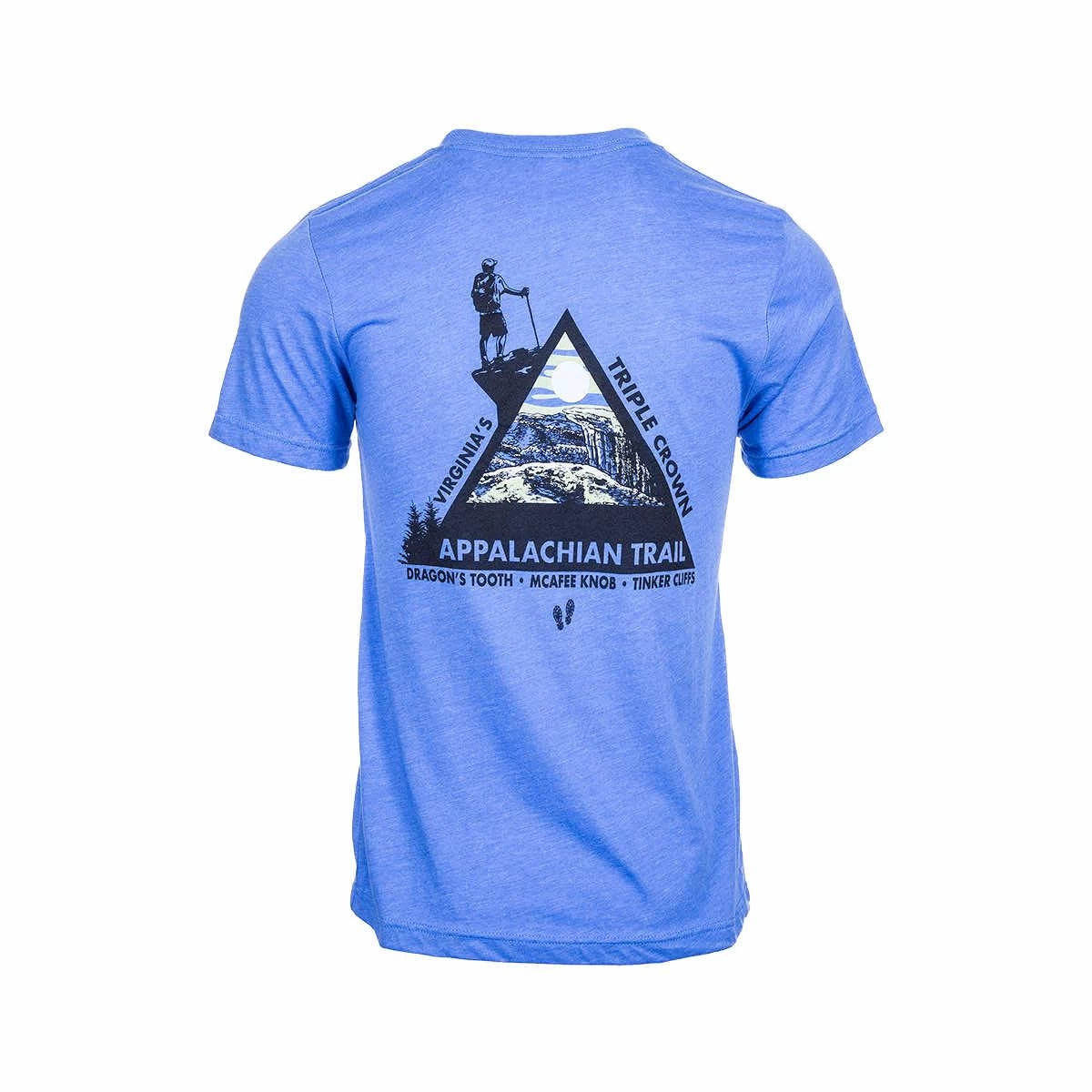 For those that have conquered all three—the Dragon’s Tooth, McAfee Knob, and Tinker Cliffs, celebrate your accomplishment in comfort with this Virginia’s Triple Crown Triangle Short Sleeve T-Shirt. This short-sleeve t-shirt is made from a soft blend of cotton and polyester and features a graphic on the back representing Virginia’s Triple Crown along the Appalachian Trail.
