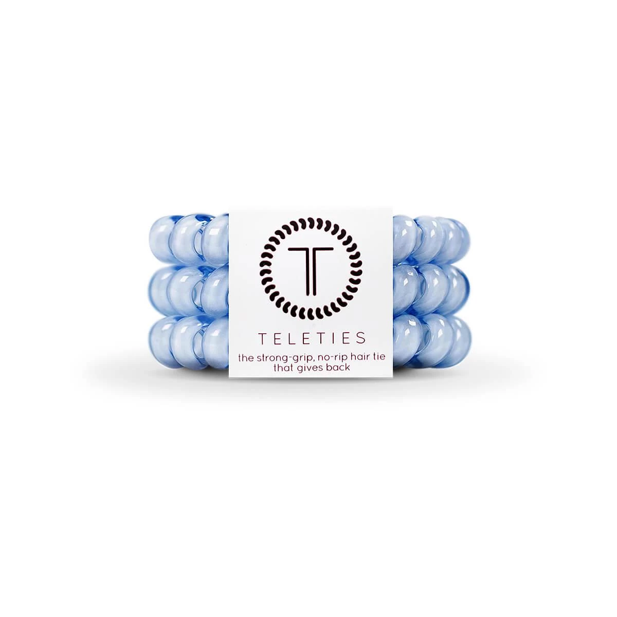 Hold your hair and enhance your style with the Washed Denim Large Hair Ties – 3 Pack from TELETIES. You’ll love the ultimate replacement for traditional hair ties… The strong grip, no rip hair tie that doubles as a bracelet. Strong, pretty, and stylish, TELETIES are designed to withstand everyday demands while taking your look to the next level. In your hair or on your wrist, a functional fashion accessory is always within reach.