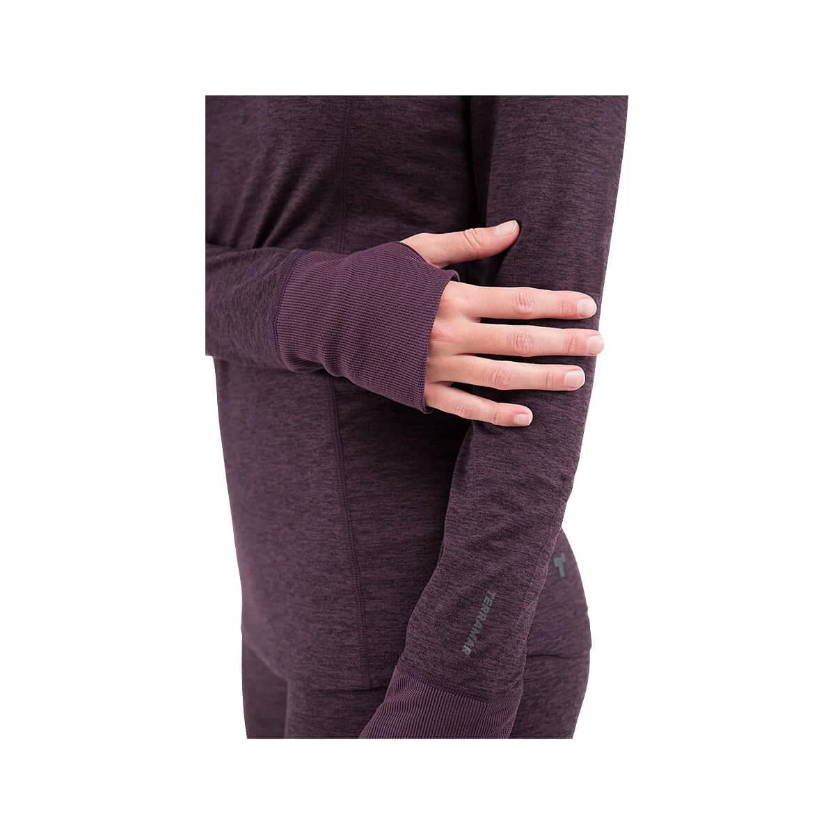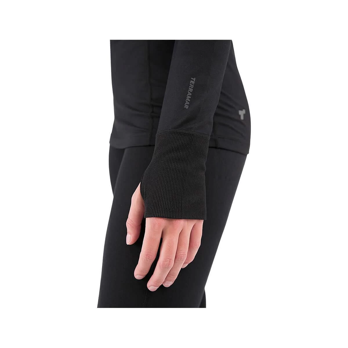The Women’s Cloud Nine Performance Scoop Long Sleeve Top from Terramar is the ideal piece for all day warmth and comfort while being out in the elements. This versatile thermal piece features an ultra-soft, mid-weight fabric utilizing their features ClimaSense Thermoregulation Technology that automatically adjusts to your body temperature. It does this by trapping air to maintain warmth when your body starts to cool down. When your aerobic activity increases and your skin temperature rises, the fabric allows moisture vapor to escape to maintain comfort.Â