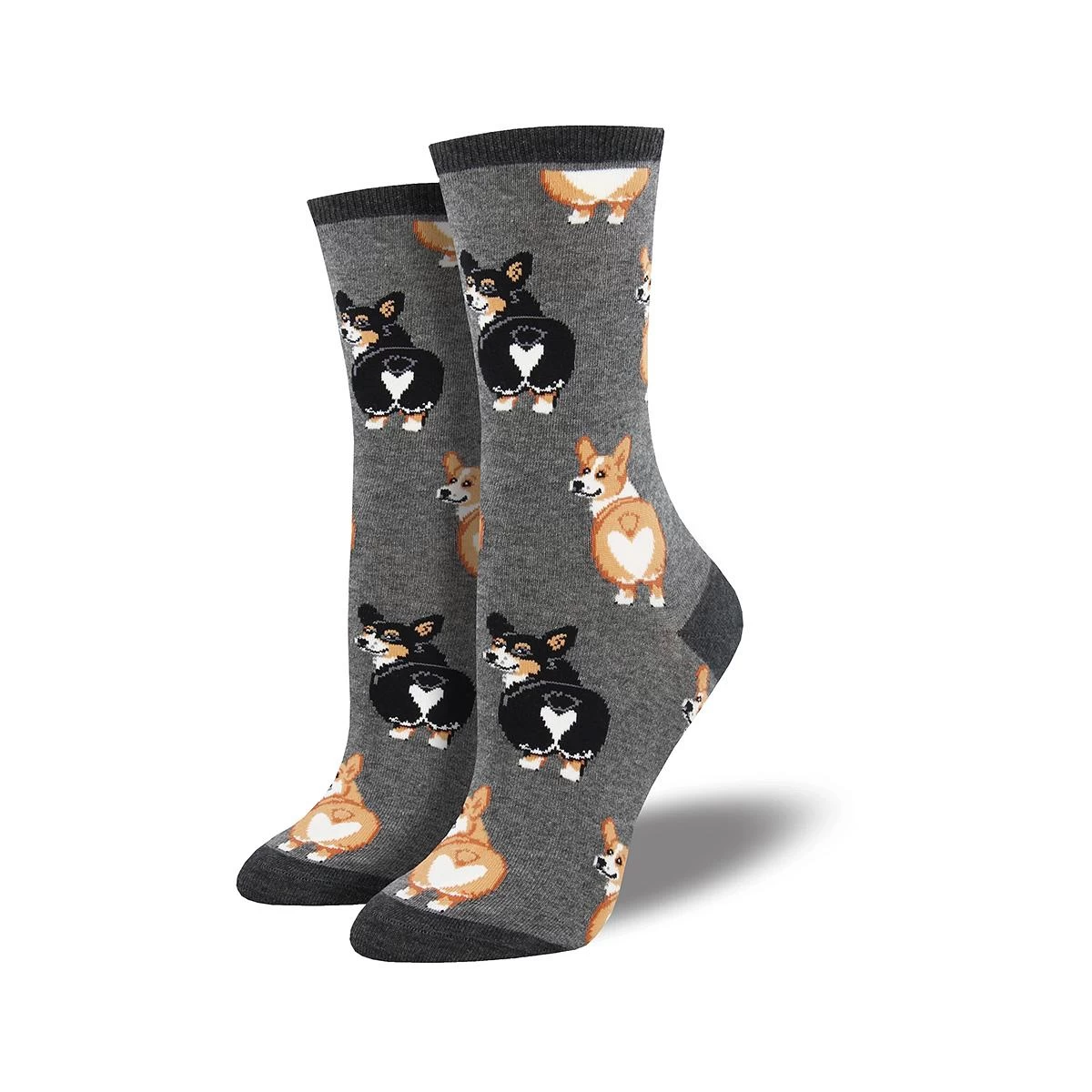 Whether your best friend is a corgi or you just love these short-legged companions, slip into these Women’s Corgi Butt Socks from Socksmith and strut off in style. These crew socks are constructed from a comfy cotton/nylon blend and feature some adorable corgis with heart-shaped butts. Â
