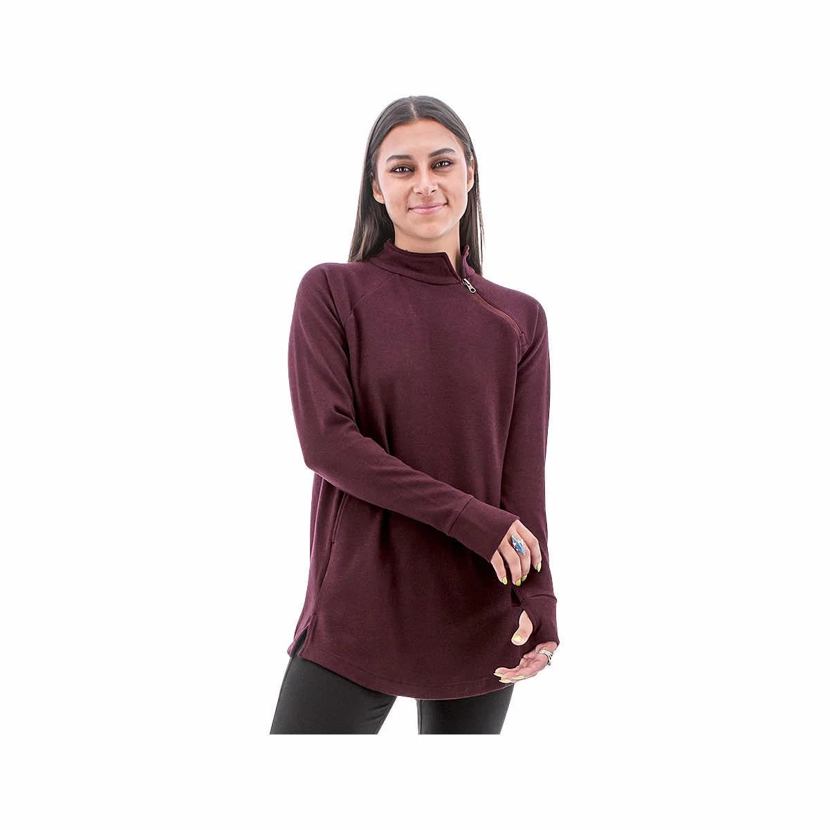 Recycled polyester creates the coziest fleece in Aventura’s Women’s McKenna Long Sleeve Tunic. Its styling makes it look sharp and polished while it flatters the skin with ultimate comfort. If that doesn’t make you fall in love, the details will, like a feminine tulip-shaped front hem, shaping princess seams, and the asymmetrical zipper detail at the neck. It’s more than just looks: functional details ensure comfort, including pockets, raglan sleeves (hello freedom!), and sporty thumbholes that make throwing on layers that much easier. We love that the tunic length is perfect to pair with leggings, but the modern details look great paired with anything!