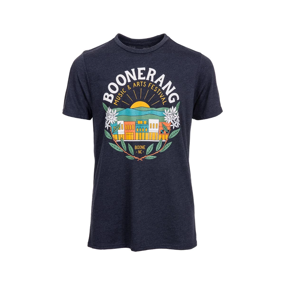 The Youth Boonerang Multi-Color Short Sleeve T-Shirt from Omega Screen Printing features an amazing design celebrating the inaugural Boonerang Music & Arts Festival. Made from lightweight material, you’ll stay cool and comfy throughout the day of fun. Get your festival T-Shirt in preparation for the much-anticipated music and art festival taking place in downtown Boone. Take a look at the artist lineup, band schedules, and the festival map on the Boonerang Music & Arts Festival page, and start preparing for this wonderful festival in the High Country!Â